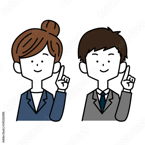 指差しするスーツを着た男女