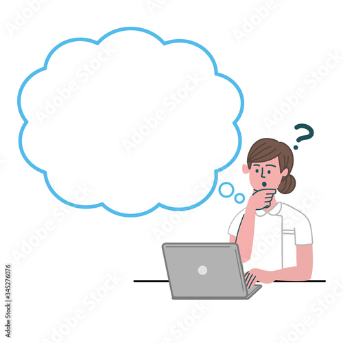医師 医者 看護師 医療従事者 女性 パソコン 考えている 空欄 空白