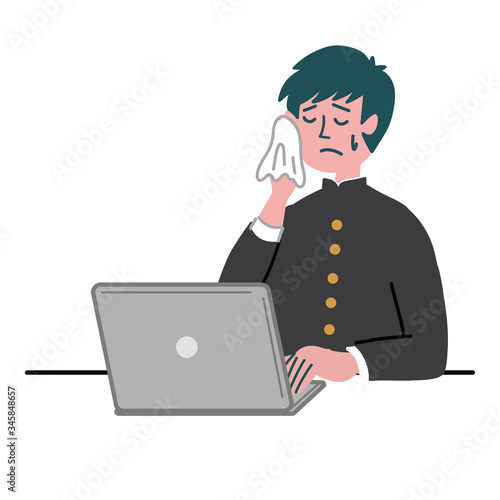 学ラン 学生 男性 パソコン 冷や汗 困っている