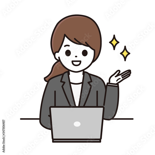 女性 パソコン スーツ イラスト