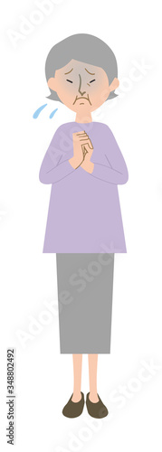 青ざめた顔でバツが悪そうなおばあちゃんの全身ベクターイラスト