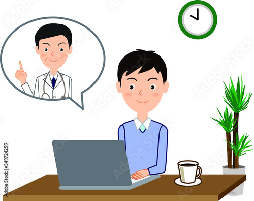 オンライン診療を受ける男性のイラスト