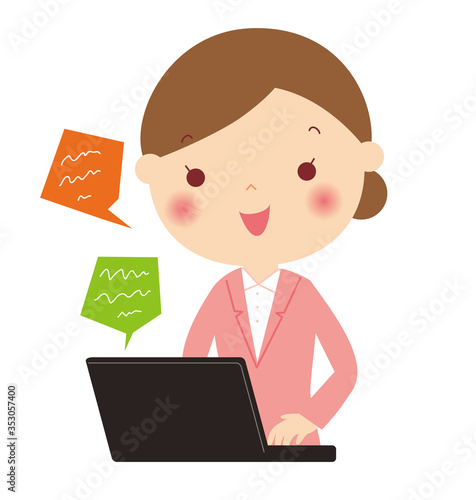 テレワークの女性 上半身 バストアップ イラスト