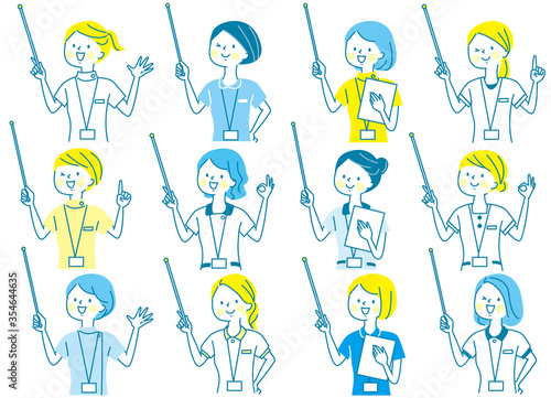 若い女性 看護師 整体師 受付 白衣 表情セット
