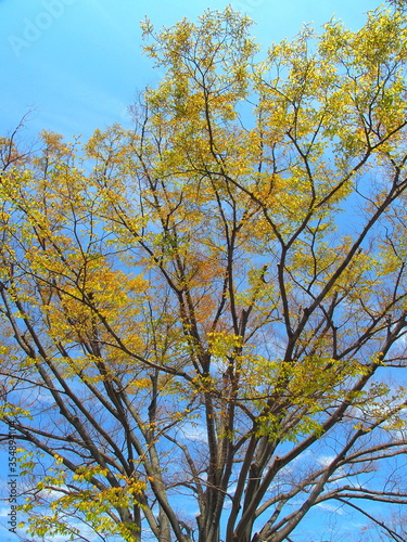 朝の公園の芽吹きの欅