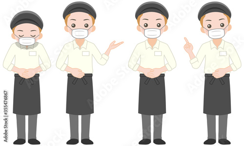 マスクをしたカフェ男性店員