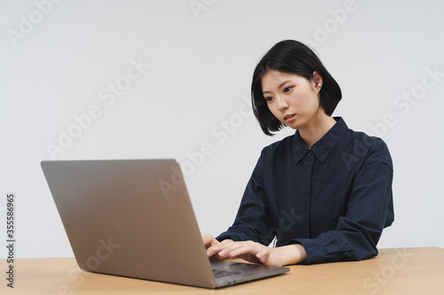 personal computer, notebook, telecommuting, online, business, cyberspace, soho, young, woman, japanese, people, smile, student, work, copy space, mail, beauty, sweet, home, pretty, clean, lovely, asian, lifestyle, network, communication, communication, digital, technology