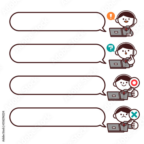 オペレーター コールセンター 男性 ノートパソコン フキダシ