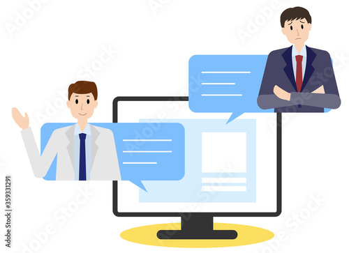 テレビ会議システムで医療相談する人々のイラスト
