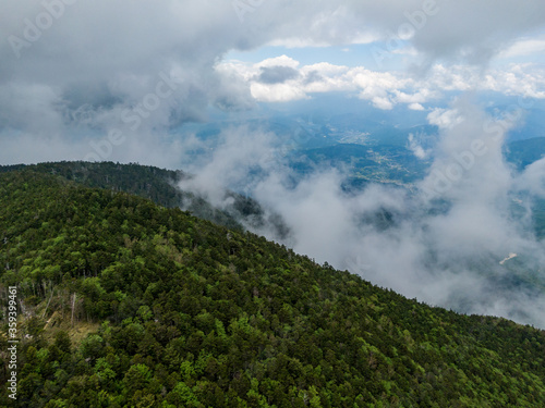 verdure, climb, peak, sky, gas, fog, fog, distress, landscape, mountain, sky, nature, forest, green, cloud, blue, wood, hill, summer, view, panorama, lovely, travel, grass, meadow, fog, depression, sun