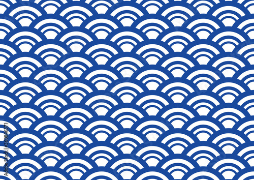 青海波の藍色系和柄パターン 線幅の変化する大きめの模様