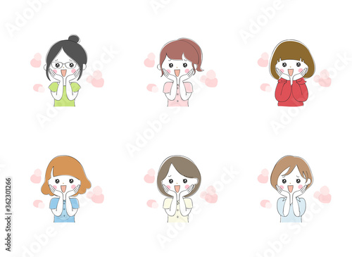 若い女性の表情バリエーション