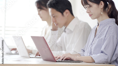 オフィスでパソコンを使う男女