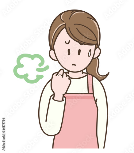 ため息をついて困る若い主婦のイラスト