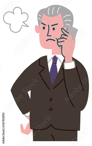 スーツ 男性 シニア 怒っている 携帯電話 立っている