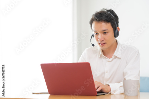 ヘッドセットをつけた アジア人 ポートレート