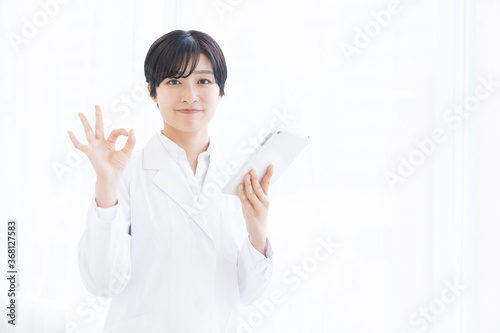 白衣の女性 タブレット