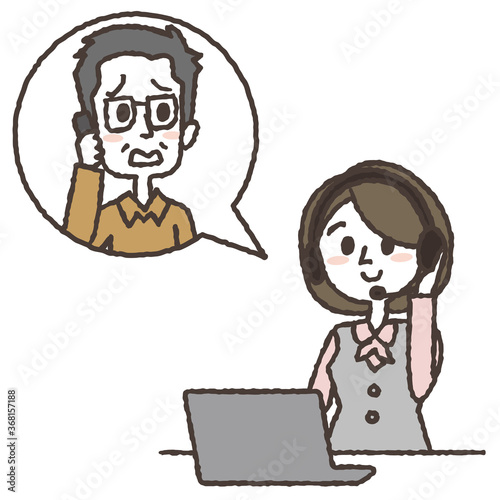 コールセンターの女性と問い合わせをしている高齢男性
