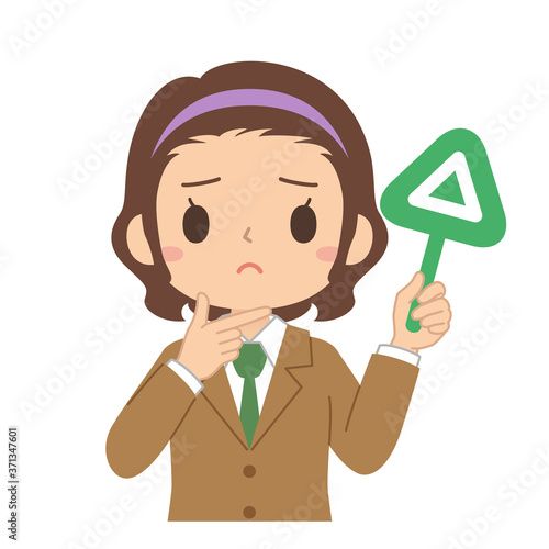 さんかくの札を持った悩み顔の女の子 高校生 中学生 イラスト