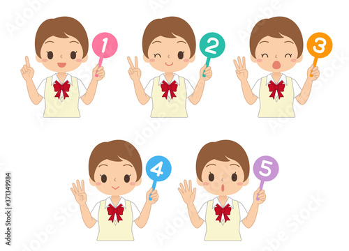 数字の札を持った女の子 セット 高校生 中学生 イラスト