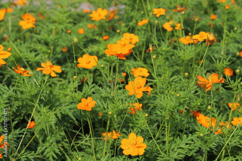 野原に咲くキバナコスモスのオレンジ色の花