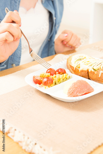食事をする女性の手元