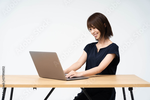 personal computer, notebook, telecommuting, online, business, cyberspace, soho, young, woman, japanese, people, smile, student, work, copy space, mail, beauty, sweet, home, pretty, clean, lovely, asian, lifestyle, network, communication, communication, digital, technology
