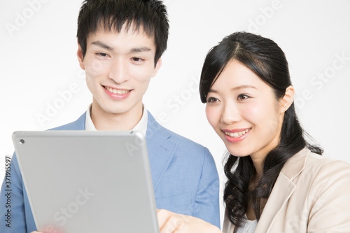 タブレットPCを見る上司と部下