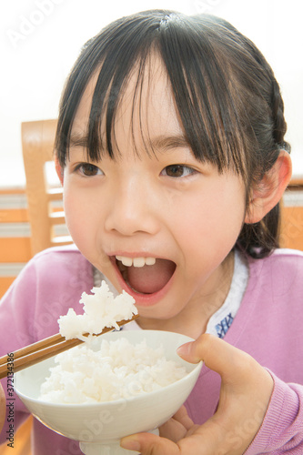 白米を食べる女の子