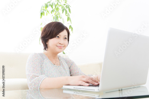 ノートパソコンをするミドル女性