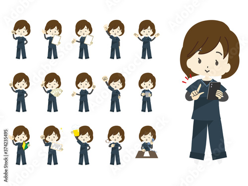 スクラブを着た看護師のポーズセット