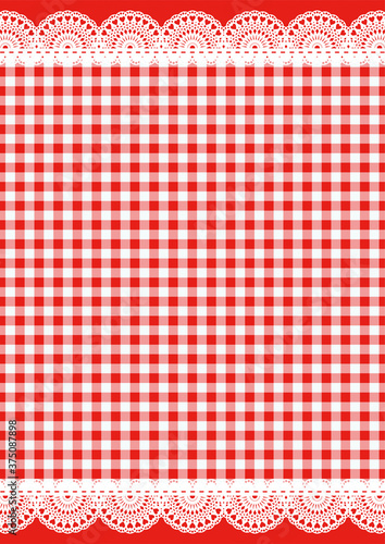 【背景画像素材】ギンガムチェックとレースの背景 レッド
