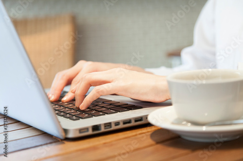 カフェでノートパソコンをやる女性