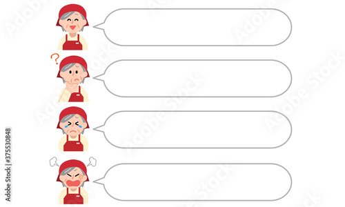 セリフ枠付きエプロン店員シニア女性上半身セット