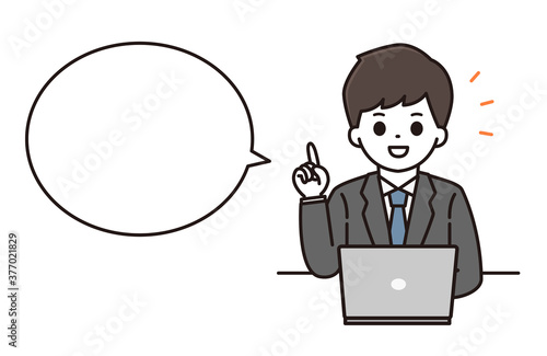 ビジネスマン パソコン ポイント 吹き出し イラスト