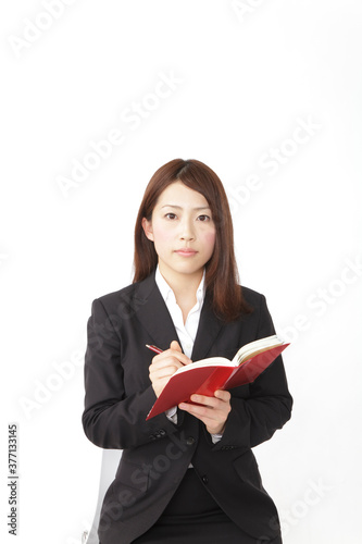 手帳にメモする新入社員