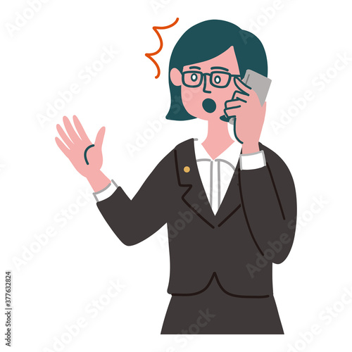 スーツ 女性 メガネ 士業 携帯電話 スマホ 驚いている