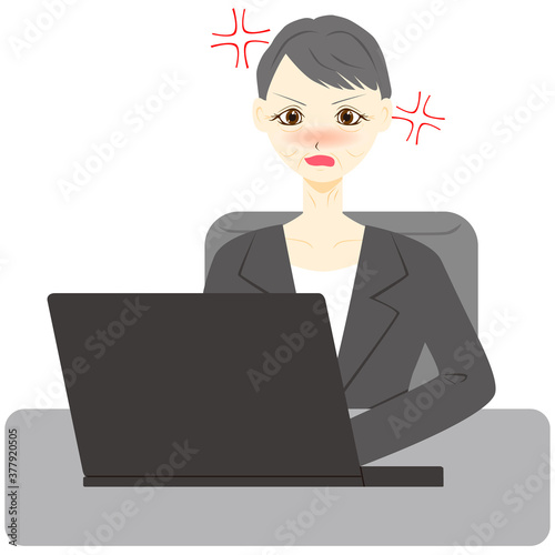 パソコン 女性 会社員 ミドル 怒る