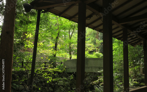 公園内のあづまやと石橋