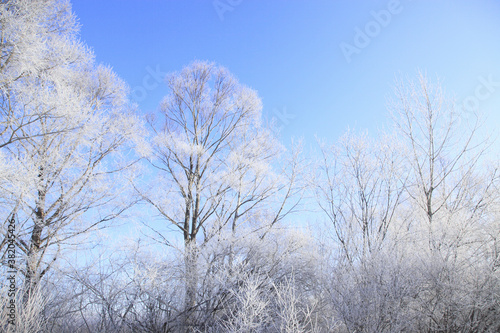 霧氷の着いた木々