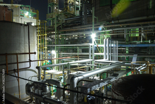 妖しい雰囲気の夜の工場