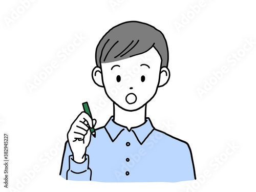 ペンを持つ若い男性