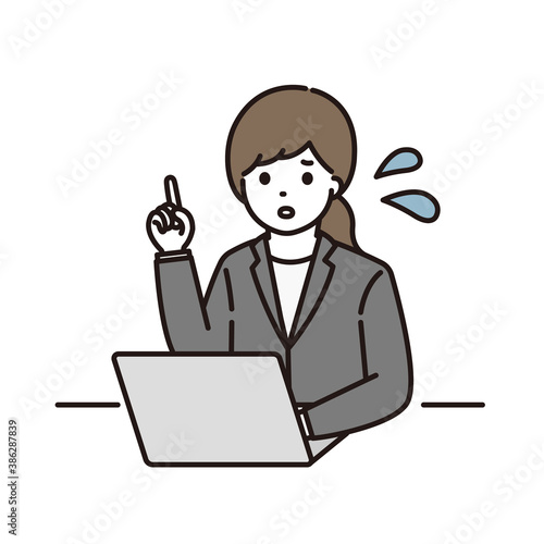 ビジネスウーマン 指差し 困惑 パソコン