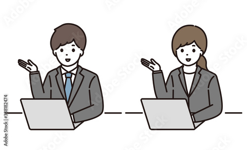 ビジネスマン ビジネスウーマン 案内 パソコン