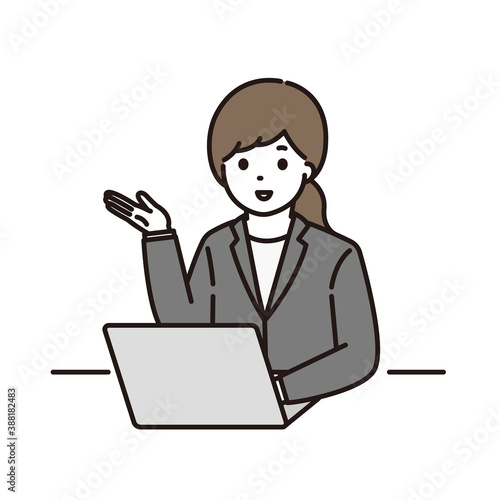 ビジネスウーマン 案内 パソコン