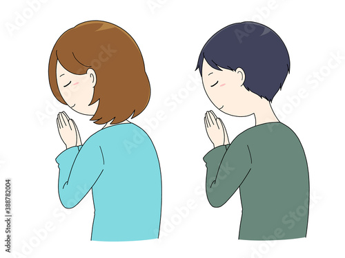 手を合わせ祈る男性と女性
