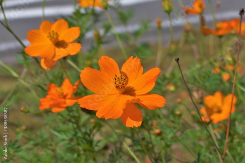 風になびくキバナコスモス