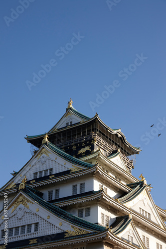 donjon, castle, blue skies, history, landmark, building, building, construction, tour tourism, tourist attraction, park, stone wall, castle, historic site, fall, landscape, japan, nature, osaka, asia, sunny, orient, sky, landmark, showplace, travel, blue, blue, blue