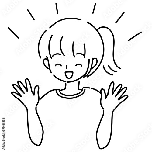 手を上げて喜ぶ女性のイラスト