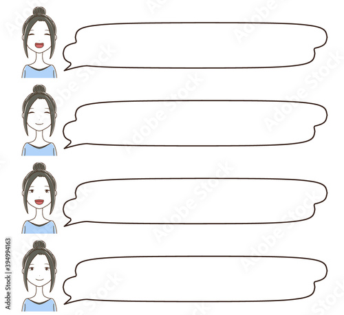 横長めな吹き出しと女性の顔のセット素材